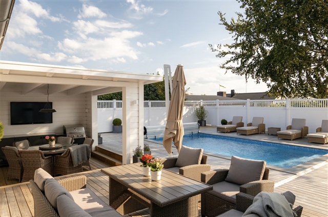Planlösningen är både välbalanserad och social. Entréplanet rymmer generösa sällskapsytor med kök, matplats, lounge och vardagsrum, en lyxig masteravdelning samt utgång till den underbara uteplatsen med pool, uterum och utekök. Här smälter inne- och uteliv samman till en avslappnad indoor–outdoor-livsstil, perfekt för både vardag och fest.