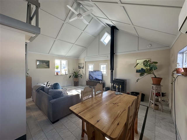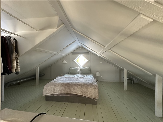 Öppen planlösning med sovloft med ståhöjd.