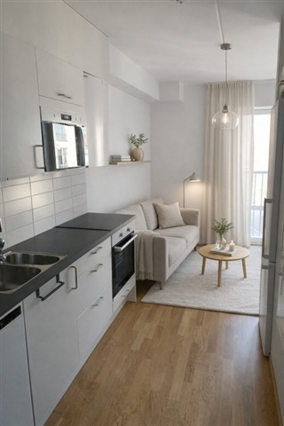 Denna smart planerade enrummare på Dalbyvägen 36 C erbjuder en modern och bekväm hyreslägenhet belägen i Arlöv. Lägenheten kännetecknas av en väl genomtänkt planlösning och en öppen atmosfär, vilket gör den idealisk för den som värdesätter både funktionalitet och trivsel i ett eftertraktat område.Inomhus präglas bostaden av ljusa, vita väggar och ett enhetligt golv i ekparkett, vilket förstärker det moderna intrycket. Den öppna kontakten mellan kök och vardagsrum skapar en rymlig känsla och underlättar möblering samt sociala sammanhang. Köksavdelningen är komplett utrustad med kyl och frys, induktionshäll med ugn, diskmaskin och mikrovågsugn, vilket bidrar till en smidig vardag. Det helkaklade badrummet är fräscht och utrustat med dusch samt en kombinerad tvättmaskin och torktumlare, vilket ger ytterligare bekvämlighet.